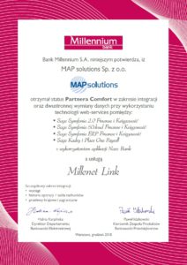 Z dumą informujemy, że stworzona prze MAP solutions aplikacja Nasz Bank została pozytywnie oceniona za pełną integrację z systemem bankowym Millenium Online. W ocenie wzięto pod uwagę, m.in. poprawność integracji w zakresie wyciągów, przelewów i historii operacji bankowych.
