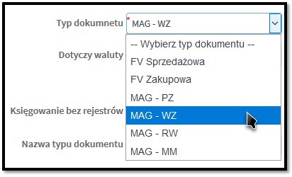 rys. 10 Możliwość zmiany typu dokumentu podczas edycji.