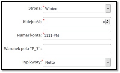 Konwersja zadziała poprawnie tylko jeżeli z obu stron zostaną użyte „przeciwne znaki”. Dla „#-M” zostanie podstawiony numer ze słownika magazynów. „#+M” zostanie zignorowane i pozostanie tylko właściwe konto.