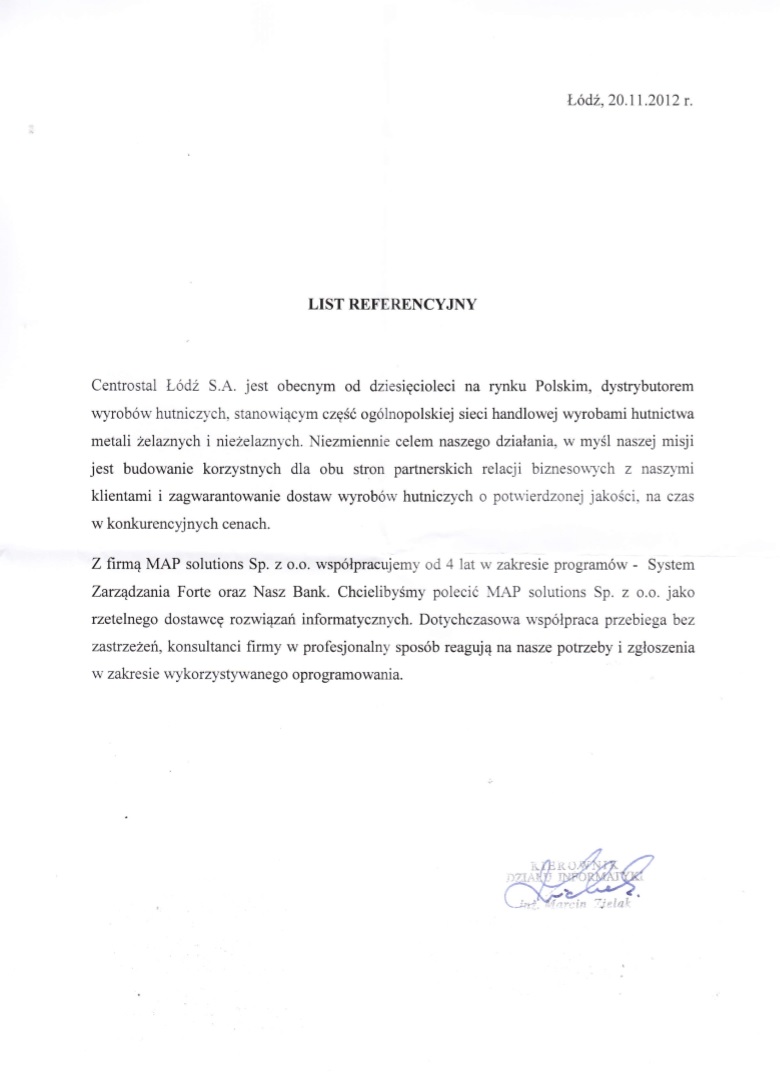 Referencje - Centrostal Łódź S.A.