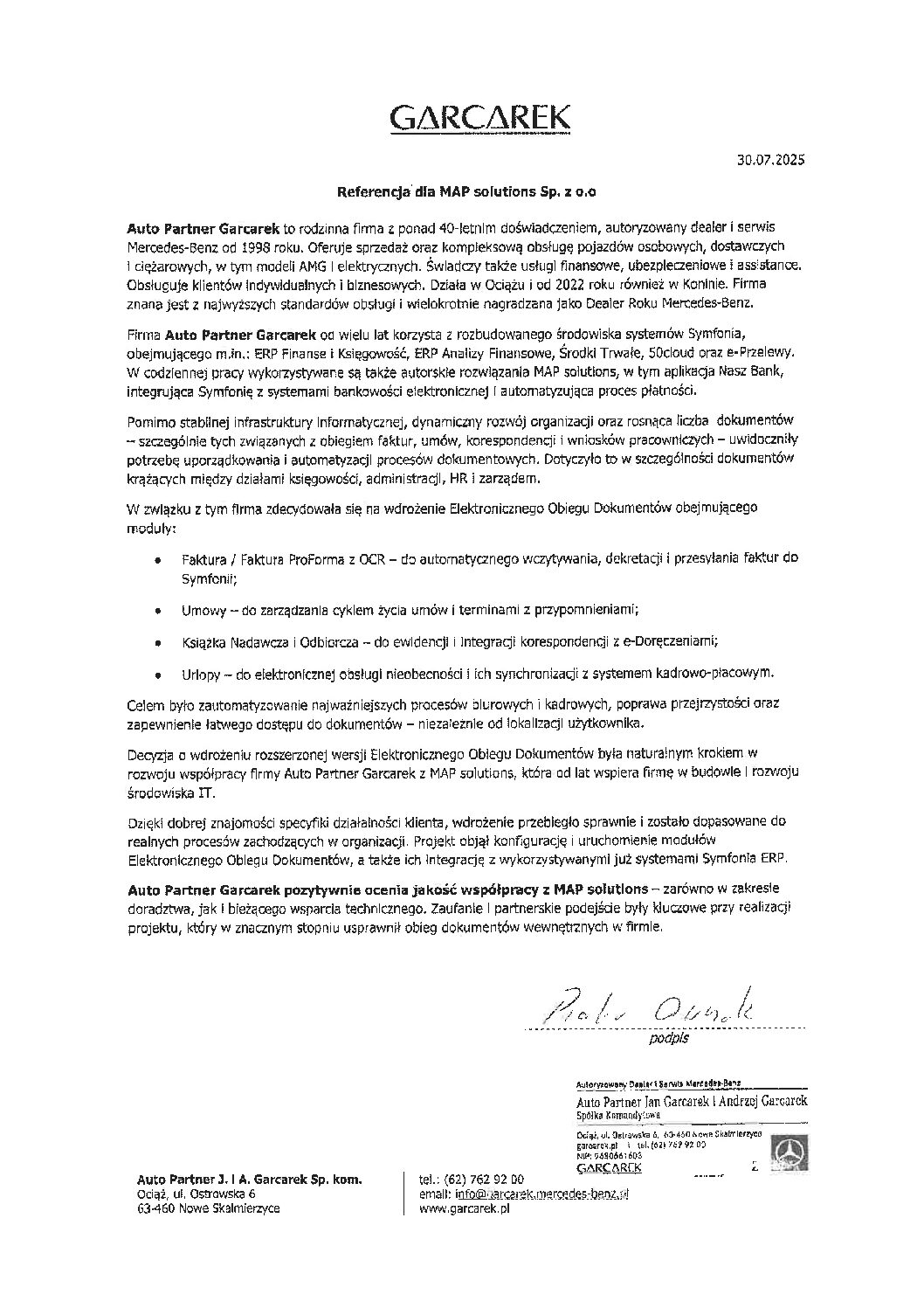 „Dzięki dobrej znajomości specyfiki działalności klienta, wdrożenie przebiegło sprawnie i zostało dopasowane do realnych procesów zachodzących w organizacji. Projekt objął konfigurację i uruchomienie modułów Elektronicznego Obiegu Dokumentów, a także ich integrację z wykorzystywanymi już systemami Symfonia ERP.”