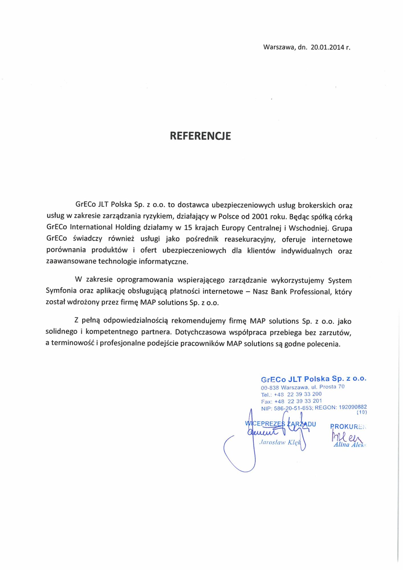[…] Z pełną odpowiedzialnością rekomendujemy firmę MAP solutions Sp. z o.o. jako solidnego i kompetentnego partnera. Dotychczasowa współpraca przebiega bez zarzutów, a terminowość i profesjonalne podejście pracowników MAP solutions są godne polecenia. […]