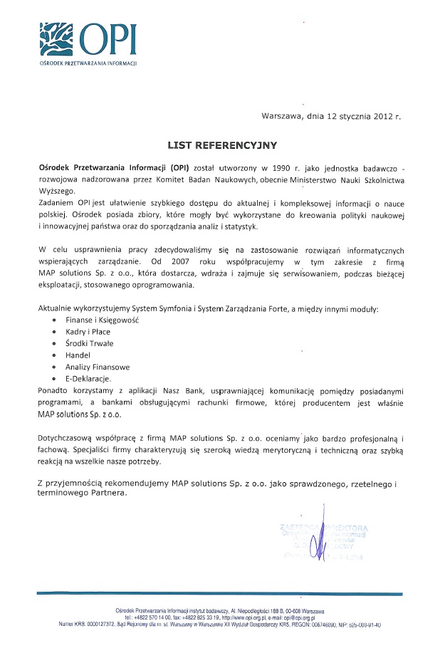 […] Specjaliści firmy charakteryzują się szeroką wiedzą merytoryczną i techniczną oraz szybką reakcją na wszelkie nasze potrzeby. Z przyjemnością rekomendujemy MAP solutions Sp. z o.o. jako sprawdzonego, rzetelnego i terminowego Partnera.