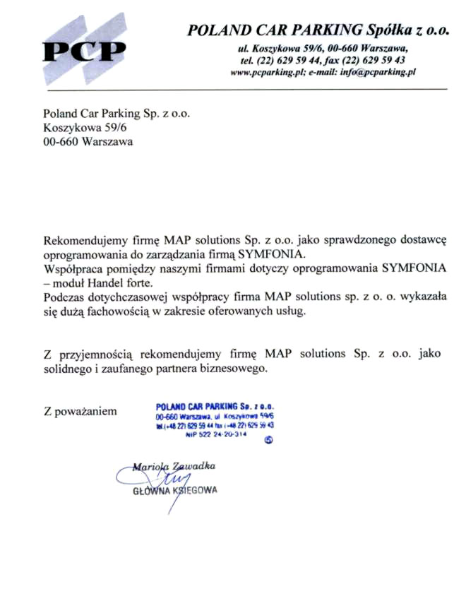 […] Podczas dotychczasowej współpracy firma MAP solutions wykazała się dużą fachowością w zakresie oferowanych usług. Z przyjemnością rekomendujemy firmę MAP solutions Sp.z o.o. jako solidnego i zaufanego partnera biznesowego.