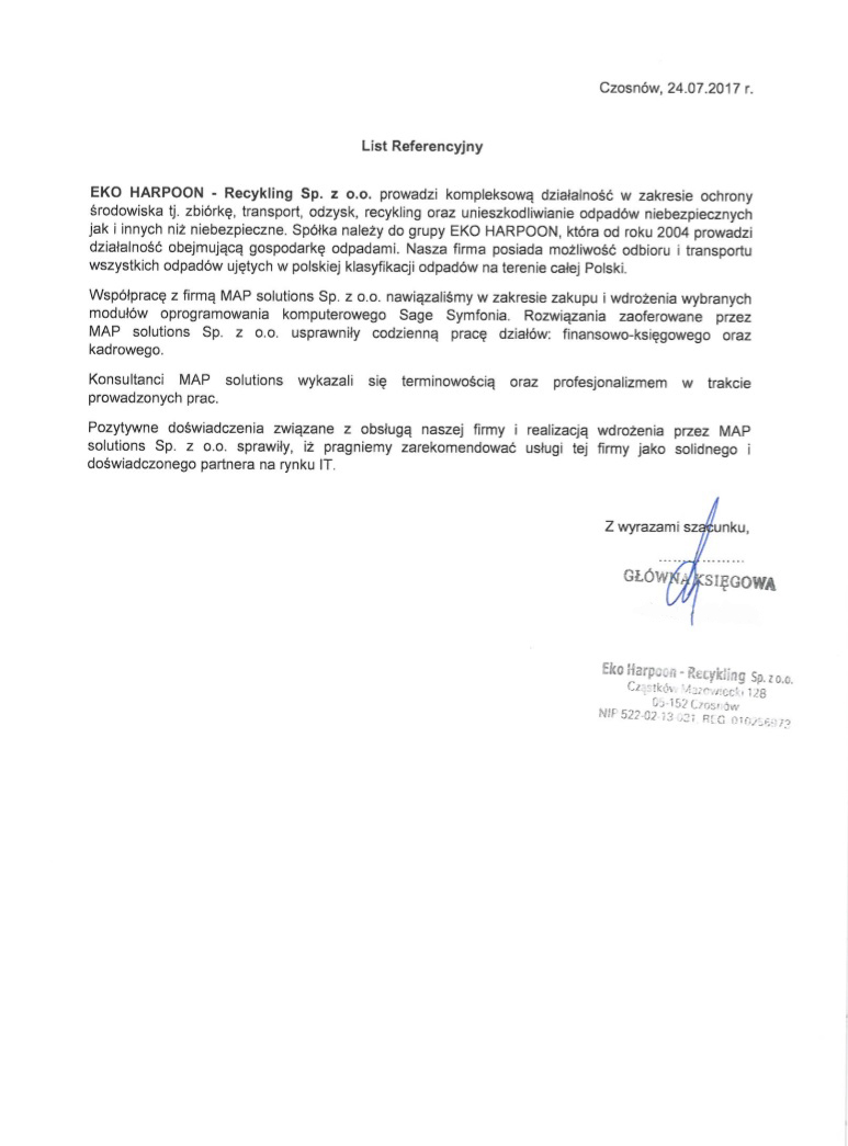 Referencje - EKO HARPOON Recykling Sp. z o.o.