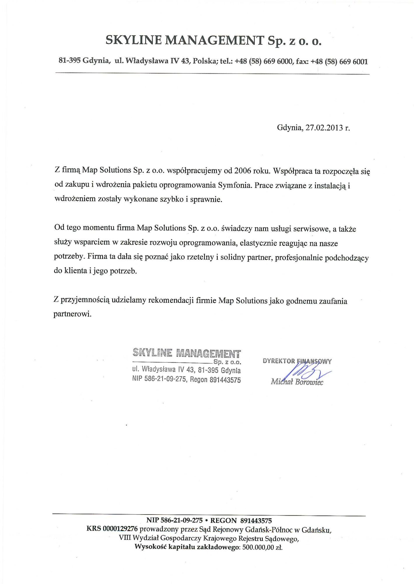 Referencje - SKYLINE MANAGEMENT Sp. z o.o.