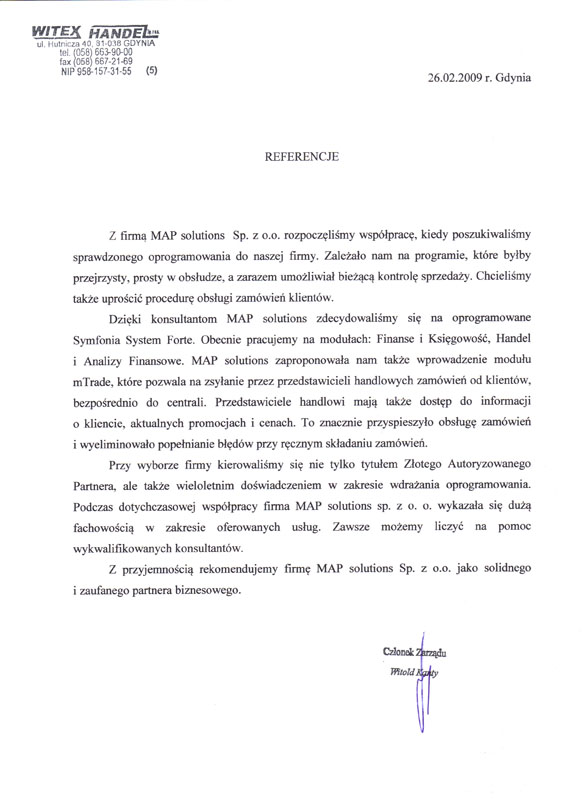 […] Firma MAP solutions zaproponowała nam wprowadzenie modułu mTrade, który pozwala na zsyłanie przez przedstawicieli handlowych zamówień od klientów bezpośrednio do centrali. […]